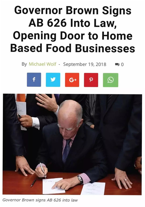 本地时间9月18日,州长Jerry Brown签署AB 626号法案,正式在加州范围内将私厨(microenterprise home kitchen)进行了合法化。